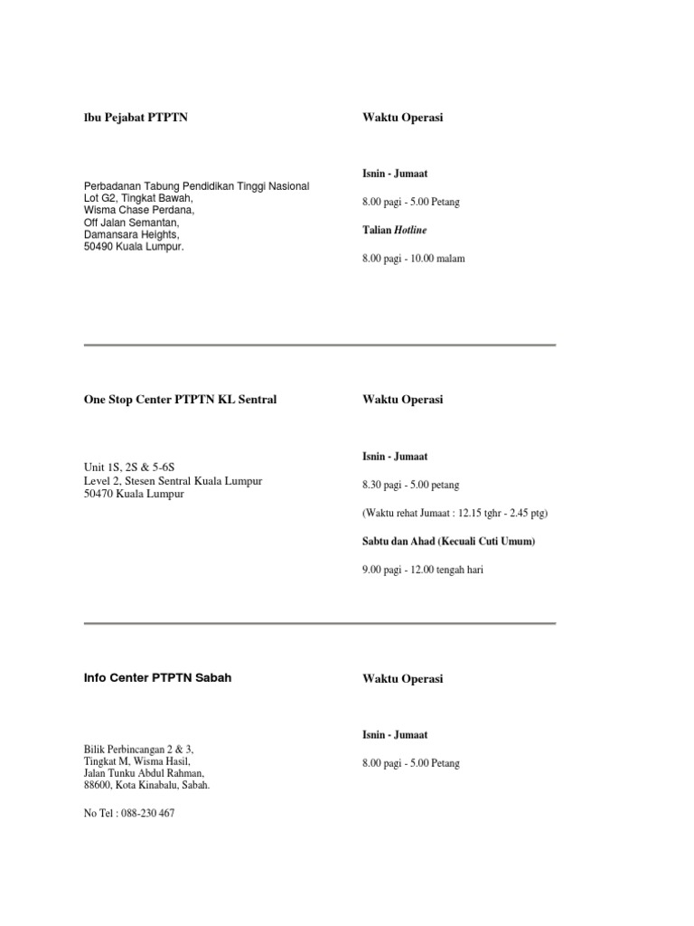 Borang Pembatalan Dan Penolakan Tawaran Pembiayaan from demo.dokumen.tips Jalan belia & off jalan tunku abdul rahman, 88000 kota kinabalu, sabah. See more of pejabat penerangan kota kinabalu on facebook. Ibu pejabat, tingkat bawah, menara ptptn, blok d, megan avenue ii, no 12, jalan yap kwan seng, 50450 kuala lumpur. Kota ini juga merupakan pusat pemerintahan untuk pantai barat negeri sabah. Pemesanan online aman dan tepercaya dengan jaminan harga termurah. Poslaju kota kinabalu address & location is provided here. Constantly referred to as kk, it is on the west coast of sabah within the west coast division. 387 likes · 181 talking about this.