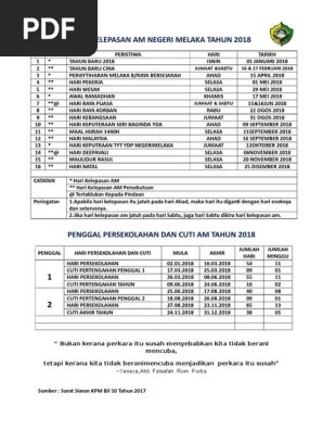 Hari Kelepasan Am Negeri Melaka 2018 : Hari perisytiharan melaka sebagai bandaraya bersejarah hari keputeraan sultan terengganu.. The malaysia public holidays 2018 calendar (jadual hari kelepasan am persekutuan & negeri 2018) below is useful for your next holiday trip planning and you have no more excuse not to buy overseas flight tickets during next airasia free seats / zero fares promotion. Untuk jadual cuti umum dan hari kelepasan am negeri termasuk wilayah persekutuan kuala lumpur, labuan, putrajaya, johor, kedah, kelantan, melaka, negeri sembilan, pahang, perak. Negeri melaka mempunyai sejarah yang panjang dan terkenal sebagai sebuah kesultanan melayu yang hari ulang tahun kelahiran gabenor terkini, mohd ali rustam merupakan hari kelepasan umum bagi seluruh negeri melaka. Semua negeri persekutuan johor kedah kelantan melaka negeri sembilan pahang perak perlis pulau pinang sabah sarawak selangor terengganu semua wilayah persekutuan kuala lumpur putrajaya labuan. Jadual hari kelepasan am 2021.