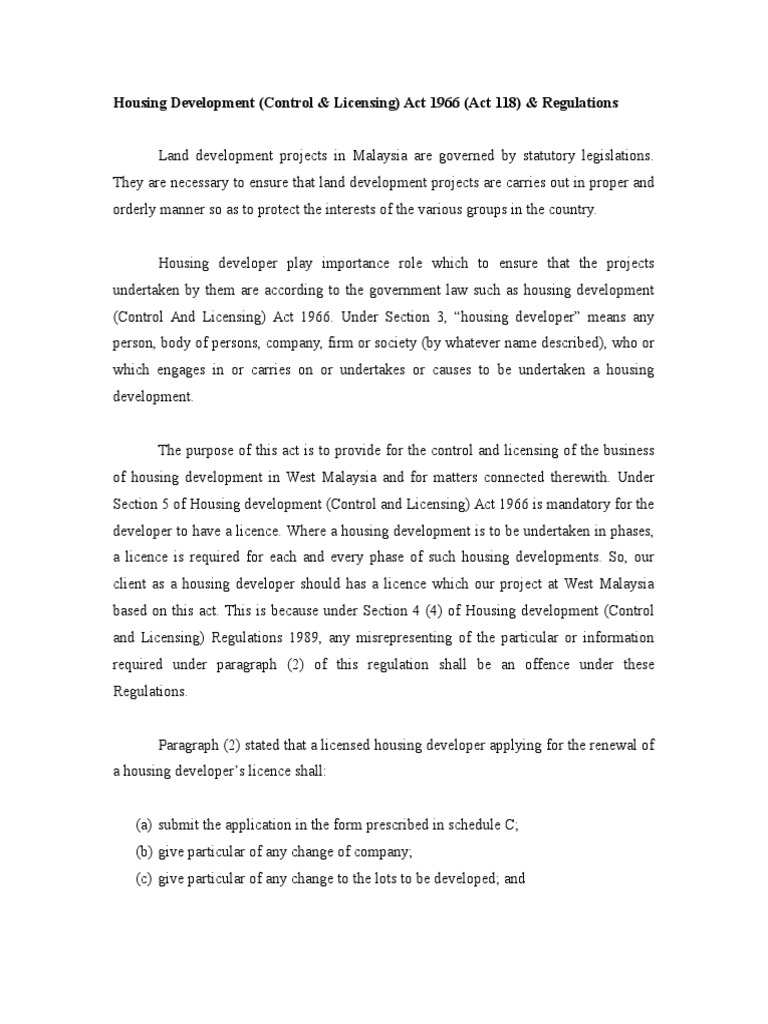 Matters schedule g schedule h 1 type of buildings land and building building or lan intended for subdivision into parcels stratified buildings and properties 2 sell. The housing development act was established in 1966. Covid 19 issues faced by developers under the housing development control and licensing act 1966 zico. (d) housing developer means any person, body of persons, company, firm or society (by whatever name described), who or which engages in or carries on or undertakes or causes to be undertaken a housing development and in a case where. The act provides for the control and licensing of the business of housing development in peninsular malaysia.