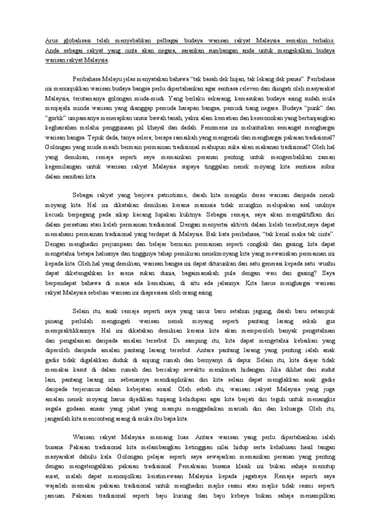 Pada era pascamodenisasi ini, rakyat kita telah menikmati pelbagai kemajuan dan pembangunan fizikal yang lantaran itu, permainan tradisional berupaya memukau hati pelancong yang melawat ke malaysia. Pakaian tradisional bagi kaum lelaki melayu ialah baju melayu. Pakaian tradisional rakyat malaysia karangan. Malaysia merupakan sebuah negara yang terdiri daripada pelbagai kaum. Baju yang nyaman dan elegan ini.